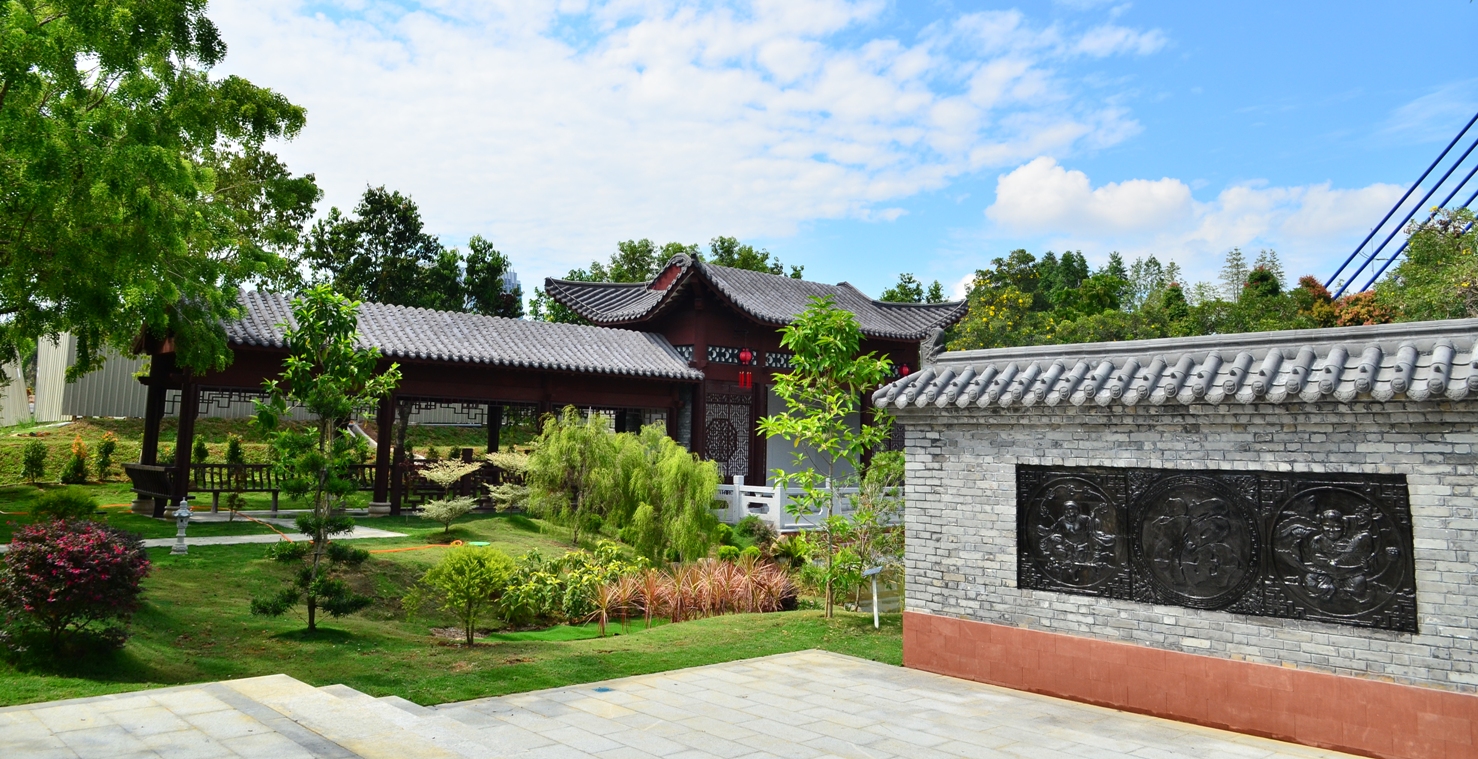 بر بالای سکویی مشرف به برکه ساختمانی قرار دارد که با چوب تیره و به سبک کلاسیک چینی ساخته شده است و ستون های حکاکی شده دو طرف آن اجازه می دهد تا هوا آزادانه در داخل ساختمان جریان پیدا کند.