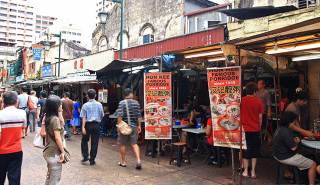 یک صبحانه سنتی که با پیاز و زنجفیل و یک کاسه آش داغ سرو می شود. شما می توانید این غذا را بیشتر در چاینا تون (Chinatown) و جالان آلور پیدا کنید و یکی از بهترین گزینهها، خیابان پتالینگ (Petaling Street)، سالن غذاخوری آش هونگکی (Hon Kee Porridge) است. این سالن غذاخوری از سال ۱۹۵۹ شروع به کار کرده است و آش و فرنی های خانگی اش که با مواد منحصر به فرد مانند تکه های ماهی خام، گوشت چرخ کرده خوک و تخم مرغ قرن (century eggs) استفاده می کند، بسیار معروف است.
