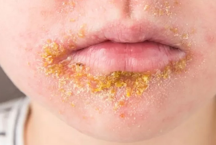 این باکتری مسری، معمولاً پوستی را که قبلاً آسیب دیده است، آلوده میکند و باعث ایجاد زخمهای قرمز رنگ و تاولهای پوستهدار با ترشح میشود – که اغلب روی صورت هستند. این بیماری اگرچه میتواند شدید به نظر برسد، اما میتوان آن را با کرم آنتیبیوتیک از بین برد.