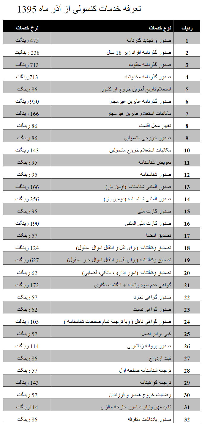 سفارت ایران در مالزی نرخ جدید خدمات کنسولی را در وب سایت خود اعلام کرده است و در برخی از موارد این نرخها افزایش شدیدی داشتهاند.