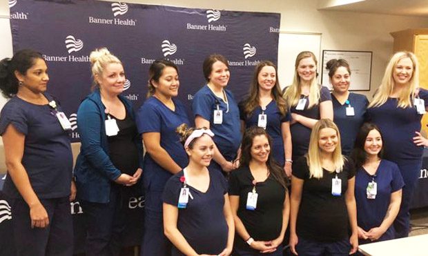 راشل شرمن، پرستاری که یک ماه دیگر وضع حمل میکند، میگوید: “ما نمیدانستیم که چند نفرمان حامله است تا اینکه یک صفحه فیسبوک درست کردیم. به نظر میاد که یک جوری همه با هم قرار گذاشتیم و باردار شدیم.” جولی گارو،از همکارانی است که پا پیش گذاشته و وظایفی مثل پرستاری از بیماران مبتلا به بیماریهای عفونی و مسری مثل زونا و سل و همچنین بعضی از درمانهای بیماران سرطانی، که پرستاران باردار نمیتوانند انجام دهند، را به جای آنها انجام میدهند.