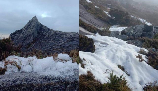 توریست مالزی – ده ها کوهنورد در کوه Kinabalu یک پدیده نادر برفی را در اطراف قله تجربه کردند.