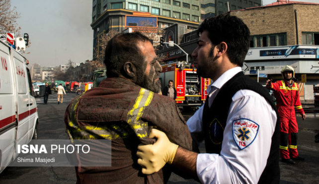 این روزنامه همچنین به نقل از تلویزیون ایران، نوشت که ده ها نفر از جمله تعداد زیادی آتش نشان، هنگام فرو ریختن این ساختمان که در انبوهی از غبار فرو ریخت آسیب دیدند.