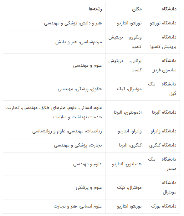 اگر هنوز تردید دارید که کدام مؤسسهٔ آموزشی را برای درخواست انتخاب کنید، در فهرست زیر ده مورد از محبوبترین دانشگاههای کانادا را آوردهایم که میتوانید آنها را بررسی کنید.