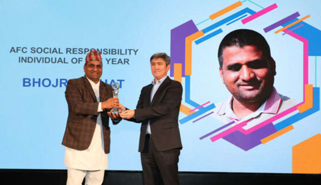 به گزارش ایسنا، در کنفرانسی در شهر کوالالامپور مالزی، برندگان بخش “رویای بزرگ” AFC مشخص شدند. علیرضا بیرانوند، دروازهبان تیم ملی فوتبال ایران و پرسپولیس به خاطر همدردی و تلاش برای کمک به سیل زدگان لرستان در این بخش نامزد شده بود ولی در نهایت بوجراج بوهات، اهل کشور نپال به خاطر تهیه و ساخت مستندی درباره دختران نوجوان که رویای فوتبالیست شدن داشتند، به عنوان نخست رسید و جایزه این بخش را به دست آورد.