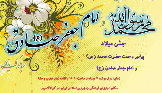 جشن میلاد پیامبر رحمت حضرت محمد (ص) و ششمین امام شیعیان امام صادق (ع) همراه با برنامههای شاد و پذیرایی به همت رایزنی فرهنگی جمهوری اسلامی ایران در کوالالامپور برگزار میشود.