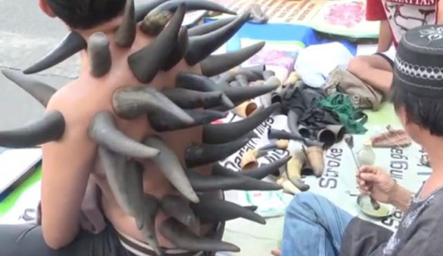 یکی از معالجه گران به نام «پک» میگوید او یکی از پنج نفری است که بیمارانش را با استفاده از شاخ گاو در پایتخت اندونزی جاکارتا درمان میکند و برای هر بیمار ۱۰ دلار میگیرد.