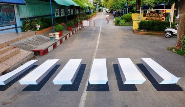 به گزارش ایسنا، روبه‌روی در ورودی اصلی مدرسه “وات بوئنگ تانگ لانگ” در حومه “بانکوک” تایلند، بسیاری از دانش‌آموزان از روی خطوط عابر پیاده سه بعدی که به شکل خطوطی شناور و با فاصله از سطح زمین دیده می‌شوند، عبور می‌کنند. این خطوط عابر پیاده سه بعدی، حاصل تلاش ۵۰ دانش‌آموز و داوطلب تایلندی در تلاش برای بهبود ایمنی بیشتر خط‌ کشی‌های عابرپیاده است.