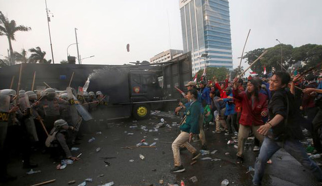 به گزارش دویچه وله، جاکارتا، پایتخت اندونزی، شاهد تظاهرات گسترده هزاران معترض بود. اغلب معترضان را دانشجویان تشکیل میدادند. این تظاهرات به خشونت میان پلیس و معترضان انجامید. پلیس جاکارتا اعلام کرد که بیش از ۳۰۰ نفر در این درگیریها مجروح شدهاند که در بیمارستانهای مختلف شهر تحت درمان قرار گرفتهاند. به گفته او، از این تعداد ۲۶۵ آنها دانشجو و ۳۹ تن نیروهای پلیس بودهاند.