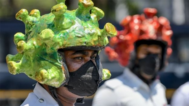 در کشور هند، پلیس با پوشیدن کلاههای ایمنی شبیه ویروس، مردم را متوجه خطرات آن میکند.
