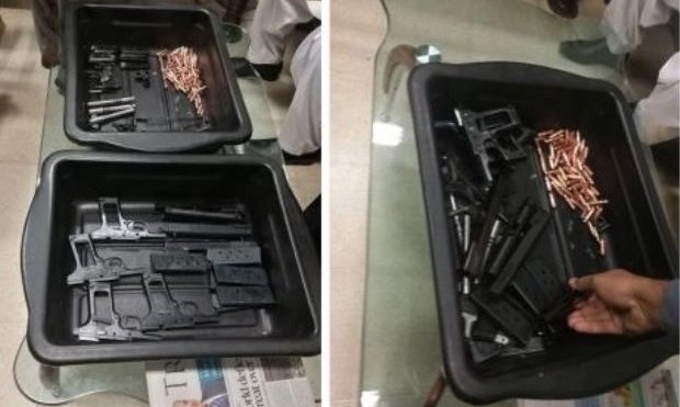 مظنون روز شنبه در فرودگاه بین المللی پاکستان هنگام سوارشدن بر خطوط هواپیمایی تایلند به مقصد مالزی دستگیر شد. مقامات پاکستان، چهار تپانچه، هشت جعبه مهمات و ۷۰ گلوله که در کیف و کفش او پنهان شده بود، کشف کردند.