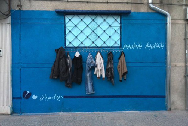 ”دیوار مهربانی” روشی نوین و ملموس در ایران برای کمک به نیازمندان است. با وارد شدن به فصل سرد زمستان ایرانی ها دست به دست هم دادند تا با ارائه لباس های گرم، نیازمندان را برای فصل سرد آماده و کمک کنند.