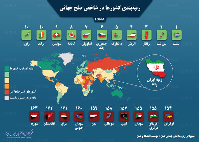 ۱۰ کشور صدر و قعر جدول گزارش شاخص جهانی صلح