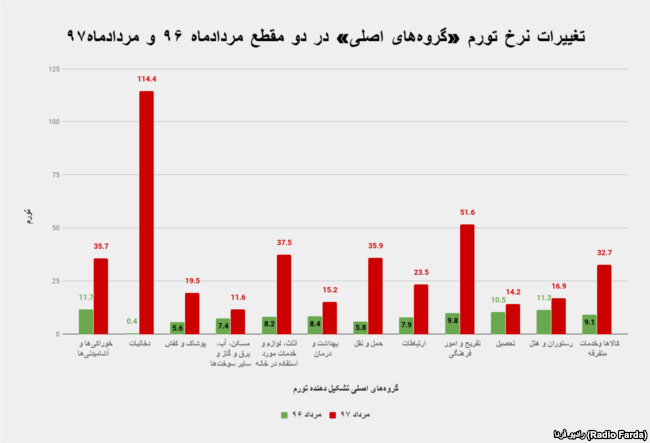به گزارش رادیو فردا، نرخ تورم میانگین مردادماه البته ۱۱.۵ درصد اعلام شده که نسبت به تورم میاگنی تیرماه، ۱.۳ واحد درصد رشد داشته و روند افزایشی نرخ تورم حفظ شده است. اما نرخ تورم میانگین، جهش تورمی ماه‌های اخیر را به درستی به تصویر نمی‌کشد.