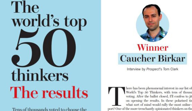 کوچر بیرکار با کسب بیش از نیمی از رای شرکتکنندگان در این نظرسنجی با فاصله زیاد از دیگر نامزدها به عنوان متفکر برتر جهان در سال ۲۰۱۹ معرفی شد.