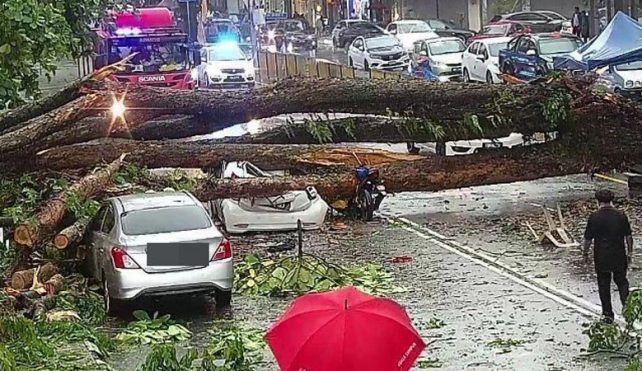 توریست مالزی – شش نفر پس از سقوط یک درخت بر روی یک خودرو و یک موتور سیکلت در امتداد جالان مالوری به بیمارستان منتقل شدند.