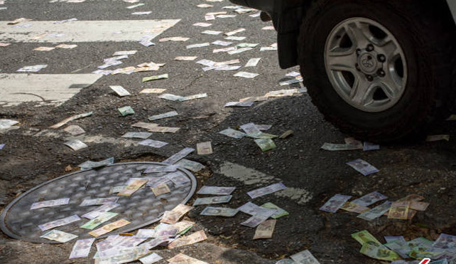 توریست مالزی – کف خیابانی در کاراکاس پایتخت ونزوئلا مملو از اسکناس شده است.