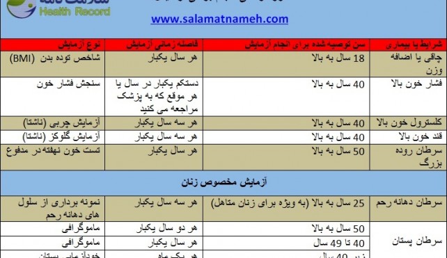 بنابراین به نظر می رسد که حفظ سلامت، در مرحله نخست بر عهده خود فرد است تا با مراقبت از سلامتی خود و انجام آزمایشهای دورهای در فواصل زمانی مناسب، از هزینه های مختلف ناشی از مواجه با بیماریهایی که اغلب دیرهنگام تشخیص داده می شوند، بکاهد.