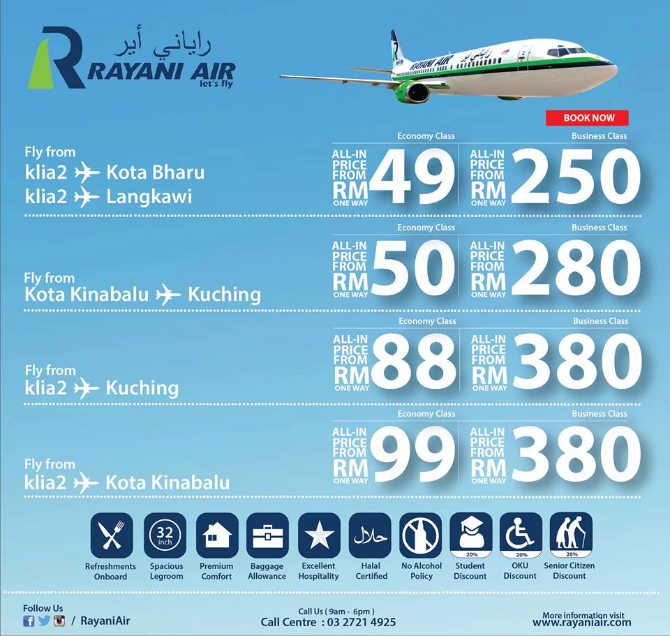 شروع قیمت بلیت ها به مقصد لنکاوی و کوتا بارو از ۴۹ رینگت می باشد.