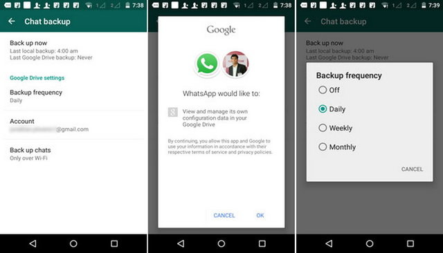 شما میتوانید با رفتن به بخش تنظیمات (settings) و سپس بخش پیامها (chats) انتخاب گزینه گرفتن نسخه پشتیبان از پیامها (chat backup)، پیامهای خود را نگهداری کنید. میتوانید انتخاب کنید که تایخچه پیامهای شما به صورت هفتگی یا ماهیانه ذخیره شود و اینکه پیامها شامل تصویر و یا ویدیو باشند هم مشکلی ایجاد نمیکند.