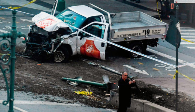 پلیس هنوز هویت مظنون را رسما تأیید نکرده و تنها گفته که او مردی ۲۹ ساله است. اما رسانهها میگویند که او “سیف الله سایپف” است که در تامپا در ایالت فلوریدا و پاترسون ایالت نیوجرسی ساکن بوده. سایپف در سال ۲۰۱۰ از ازبکستان وارد آمریکا شده و گفته میشود که به طور قانونی در این کشور اقامت داشته. شرکت تاکسی اینترنتی اوبر تأیید کرده که او برای این شرکت کار میکرده است.