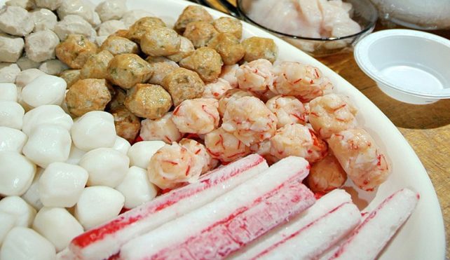 در استیمبوت (Steamboat یا Hotpot): یکی از مواد رایج برای انداختن در آب جوشِ استیمبوت خانوادگی.