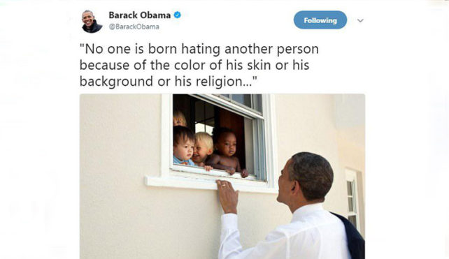 توریست مالزی – پستهای اوباما مرتبط با راهپیمایی سفیدپوستان نژادپرست در شارلوتزویل و تصاویر او با گروهی از کودکان از نژادهای مختلف محبوبترین توئیتهای سال ۲۰۱۷ بودهاند.