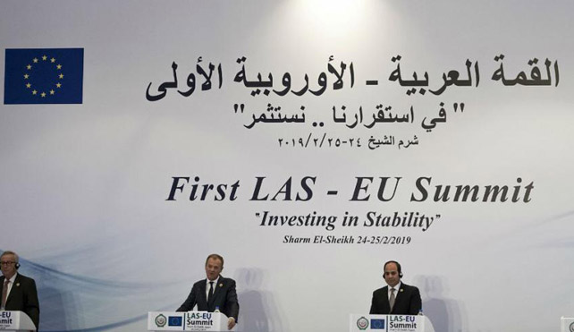 نمایندگان حدود ۴۰ کشور عضو اتحادیه عرب و اتحادیه اروپا روزهای یک‌شنبه و دوشنبه نخستین نشست میان این دو سازمان بین‌المللی را «به منظور تقویت ثبات، رفاه و زندگی بهتر در هر دو منطقه» برگزار کردند. اختلاف میان اعراب و اسرائیل، جنگ بی‌پایان در لیبی، سوریه و یمن و همچنین نبرد با «تروریسم» و اسلام‌گرایان افراطی از مهم‌ترین محورهای این نشست دو روزه بود.