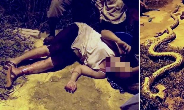 توریست مالزی – یک زن روستایی که مورد حمله یک پیتون ۶ متری قرار گرفته بود، توسط همسایگان از مرگ نجات یافت.