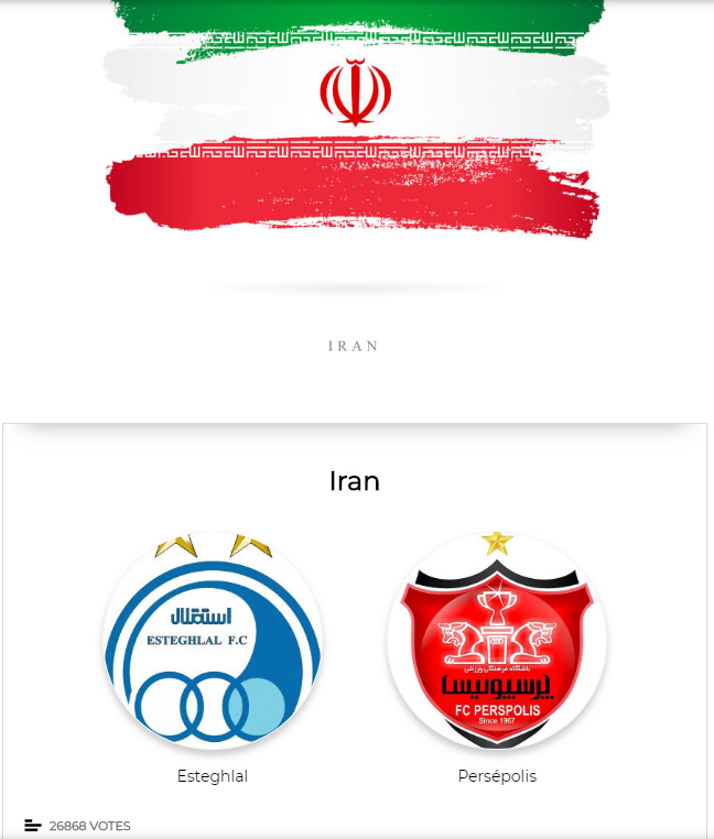 در این نظرسنجی، مارکا تیم‌های مطرح کشورهای مختلف را انتخاب کرده که استقلال و پرسپولیس از طرف تیم‌های ایرانی انتخاب شده‌اند. این نظرسنجی همچنان ادامه دارد و علاقه‌مندان به شرکت در این نظرسنجی می‌توانند با کلیک بر این لینک به تیم مورد علاقه خود رای دهند.