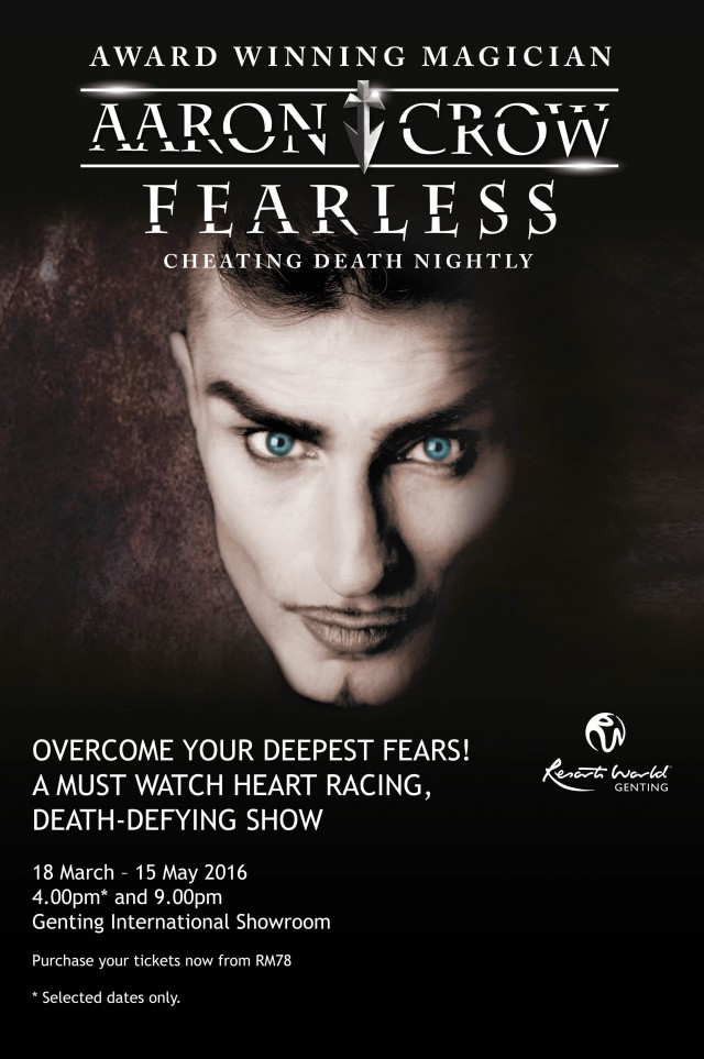 “آرون کرو” شعبده باز مشهور بلژیکی با شوی دیدنی و هیجان انگیز Fearless به زودی در گنتینگ به اجرای برنامه می پردازد.