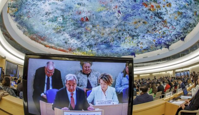 دبیرکل سازمان ملل متحد در ادامه سخنان خود خواستار احترام بیشتر به حقوق بشر و برقراری صلح در سراسر جهان شد. آقای گوترش سپس هشدار داد که جهان «روز به روز ناامن تر می شود.» او طی نطقی در حضور اعضای شورای حقوق بشر سازمان ملل تصریح کرد: «جهان ما با سرعتی سرسام آور در حال تغییر است. افزایش درگیریها، رنج بیسابقهای را به همراه دارد اما حقوق بشر همواره امری ثابت و پایدار است.»