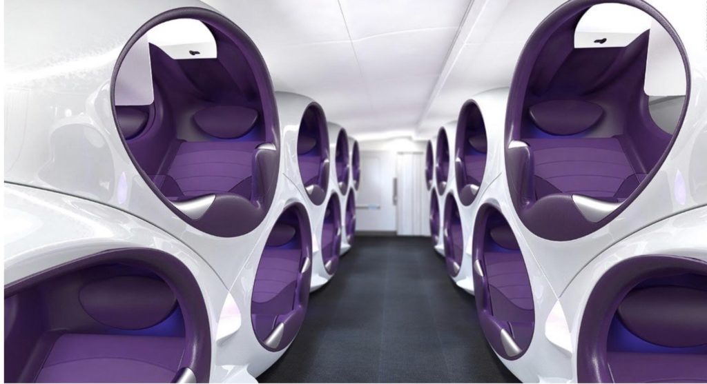 در هواپیماهای نسل آینده، ظاهر صندلی ها تغییرات زیادی خواهد کرد. یکی از این طرح های ارائه شده، صندلی های پیله ای هستند که به صورت غلاف هایی روی یکدیگر قرار گرفته اند و محیطی کاملا خصوصی برای مسافران ایجاد کرده اند. این شکل صندلی ها سبب می شود بلیط هواپیما ارزان شود. همچنین این صندلی ها به دلیل ساختار ویژه ای که دارند، باعث افزایش ظرفیت هواپیماهای نسل آینده می شوند.