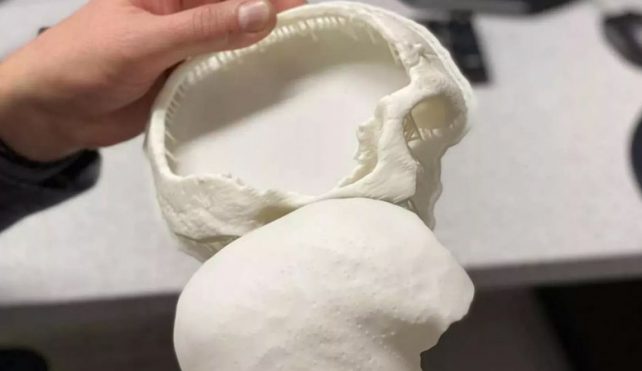 در اینجا بود که برای جایگزین کردن جمجمه خیلی سریع گزینه پروتز مطرح شد. پزشکان معالج تصمیم گرفتند این استخوان را با استفاده از پلاستیک مخصوص در آزمایشگاه چاپ سهبعدی بیمارستان دانشگاه تولید کنند. یکی از مزیتهای این جمجمه تولیدشده با چاپگر سهبعدی این بود که بسیار سریع، یعنی تنها ظرف یک هفته آماده شد؛ چیزی که به گفته بیمارستان در نوع خود در اروپا بیسابقه به حساب میآمد.