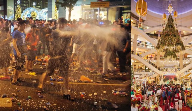 و اما در شب کریسمس جوانان به خیابان بوکیت بینتانگ رفته و بر سر هم برف شادی می پاشند. توصیه ما به شما این است که از بردن کودکان در این شب به بوکیت بینتانگ خودداری نمایید مراقب چشمان خود باشید تا با برف شادی آسیب نبیند و اگر نسبت به برف شادی حساسیت دارید در شب کریسمس به این خیابان نروید. همچنین مراقب وسایل شخصی خود نیز باشید.