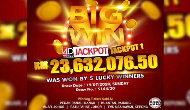 توریست مالزی – از زمان از سرگیری فعالیتهای Sports Toto در ۱۷ ژوئن پس از مقررات منع آمد و شد (MCO)، جند خوش شانس در مجموع ۳۳.۶۹ میلیون رینکت در سراسر کشور برنده شده اند.