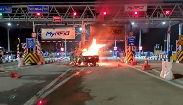 توریست مالزی – یک خودرو بر اثر برخورد با جدول در میدان عوارضی بزرگراه ساحل غربی (WCE) آتش گرفت و راننده جان خود را از دست داد.
