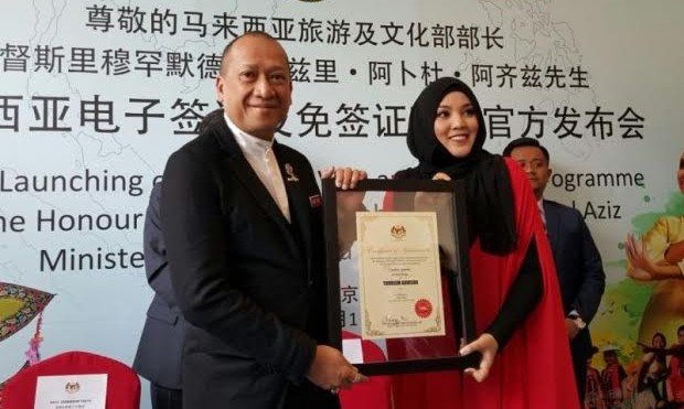 خواننده زن مسلمان مالزیایی طی آیینی رسمی در شهر پکن از سوی وزیر فرهنگ و گردشگری مالزی به عنوان سفیر گردشگری این کشور در چین برگزیده شد.