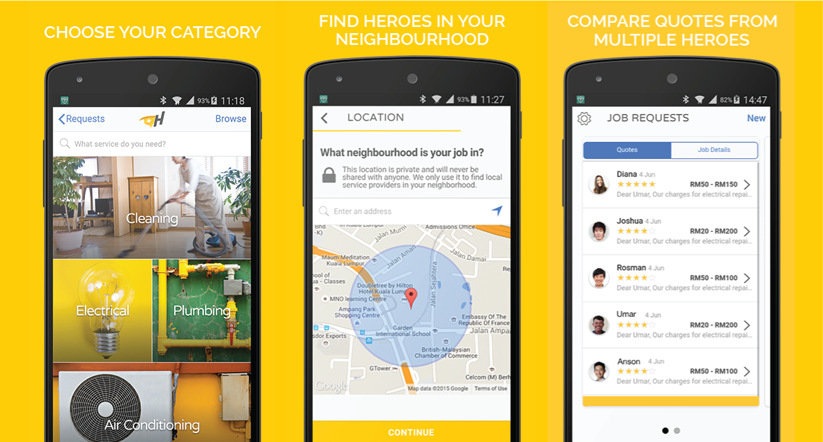 برای استفاده از این نرم افزار کافیست سرویس مورد نیاز خود را در دسته بندی های مختلف موجود جستجو نمایید. پس از ارسال درخواست کمک در کمتر از چند ساعت پاسخ هایی از طرف شرکت های خدمات رسانی برایتان ارسال خواهد شد که شما میتواند آنها را بررسی و مقایسه کنید و در صورت تمایل با آنها تماس گرفته یا برایشان پیغام ارسال نمایید.