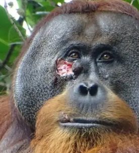 مشاهده اورانگوتان زخمی در حال مداوای خود با گیاه دارویی