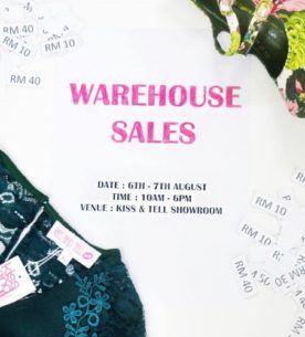 حراج پوشاک برند Kiss & Tell از شنبه ۶ آگوست تا یکشنبه ۷ آگوست برگزار می شود. علاقمندان می توانند در این حراج پوشاک مورد نظر خود را از ۱۰ رینگیت خریداری نمایند. تاریخ: شنبه ۶...