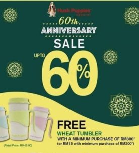 ۲۴ اسفند ۱۳۹۶توریست مالزی- Hush Puppies مالزی حراج شصتمین سالگرد خود را برگزار میکند. در این حراج می توانید از تخفیفات بسیار عالی تا سقف ۶۰ درصد تخفیف بهره مند شوید. زمان: ۳ مارچ تا ۳۰ مارچ ۲۰۱۸... -