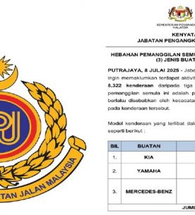 ۲۰ تیر ۱۴۰۴۰توریست مالزی – اداره حملونقل جادهای مالزی (RTD) فراخوانی برای ۸۳۲۲ وسیله نقلیه از سه شرکت کیا، یاماها و مرسدسبنز صادر کرده است. این فراخوان به دلیل نقصهای ایمنی مختلفی انجام شده که ممکن است برای... -