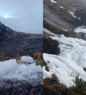 بارش برف در کوه کینابالو کوهنوردان را شگفت زده کرد